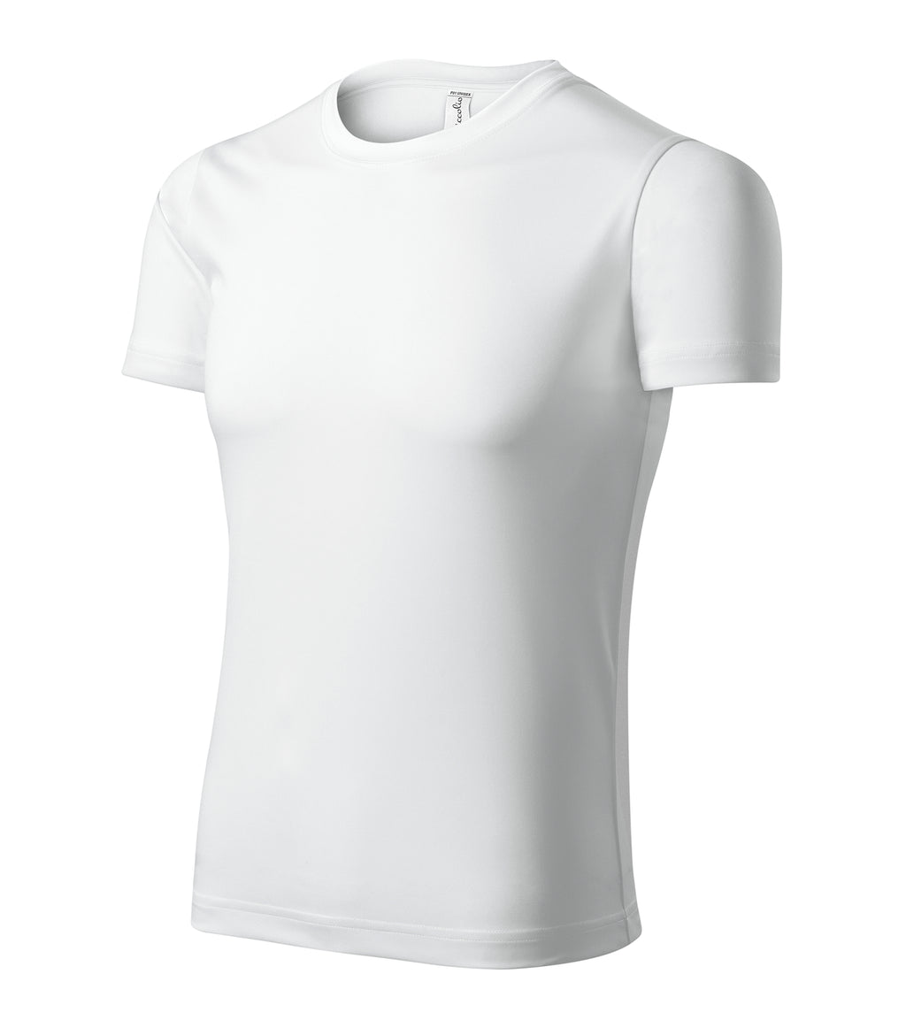 glattes, schnelltrocknendes Material, Schnitt mit Seitennähten, geformter Kragensaum aus 1:1 Rippstrick, Innenseite des Kragens durch ein Band in T-Shirt Material versäubert, Schulternähte verstärkt mit einem Band, ideal für Sport- und Bewegungsaktivitäten, abreißbares Etikett