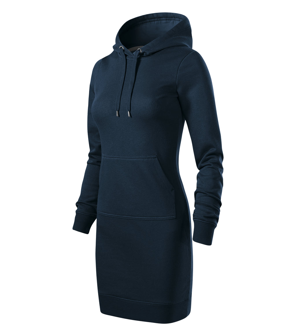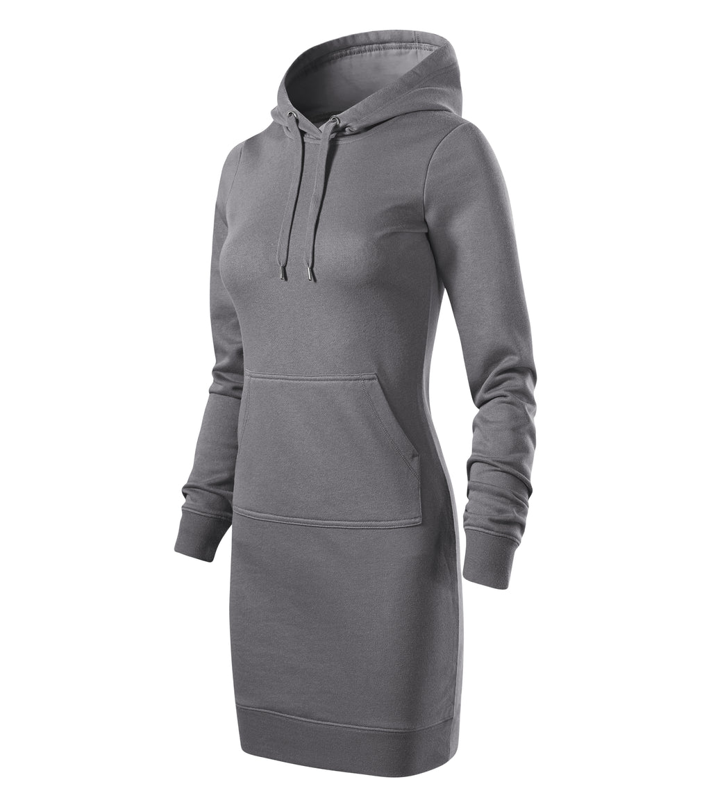 leicht taillierter Schnitt mit Seitennähten, Länge über den Knien, Kapuze mit Innenfutter, durch Kordel zusammenziehbar, Innenseite des Kragens durch ein gewebtes Band in der Farbe 94 versäubert , unterer Rand und Ärmelmanschetten aus 1:1 Rippstrick mit 5 % Elastanzugabe, aufgesetzte Kängurutasche, Innenseite ungekämmt