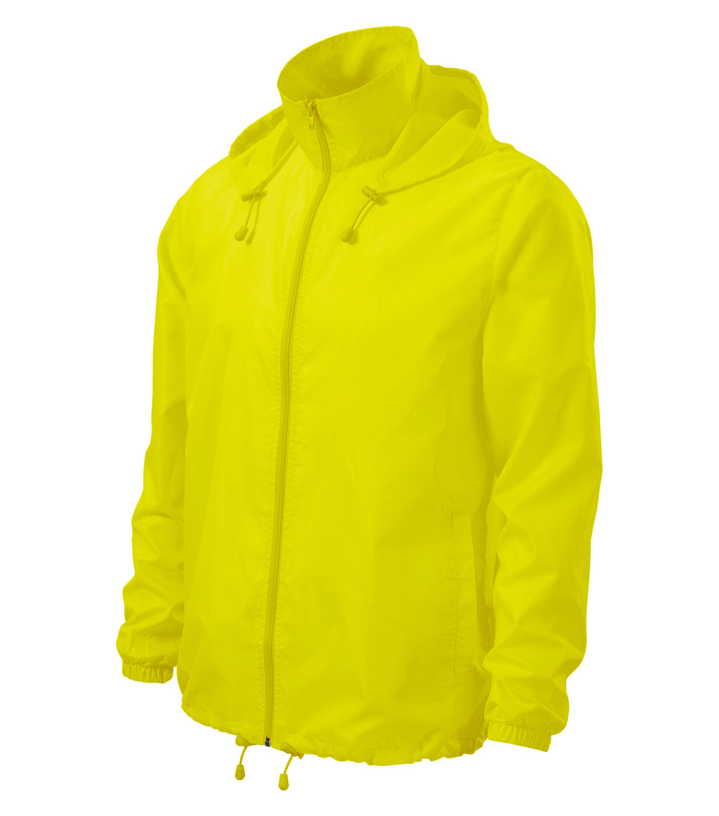 eichtes winddichtes Gewebe, durchgehender Spiralreißverschluss, Kapuze in den Kragen verschließbar, Kapuze und unterer Ärmelsaum durch elastisches Band zusammenziehbar, Leistentaschen, Einzeltasche mit Reißverschluss für platzsparende Lagerung